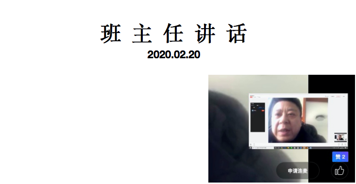 班主任叶勇飞老师向同学们表达了亲切的问候,谈及云端课堂,叶老师表示网课方式是目前的最佳选择,在保证身心健康的同时也能最小程度影响同学们的正常学习。最后,老师祝大家生活愉快,学习进步。