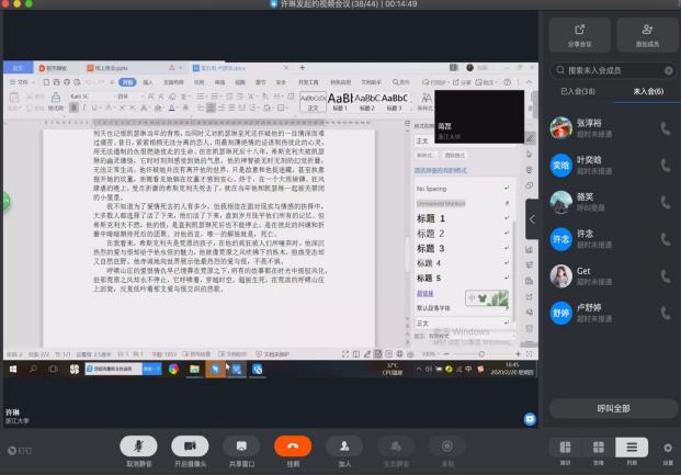 会议的第二项议程,是由学习委员蒋磊同学就浙大钉使用、选课等线上课堂相关问题进行答疑。紧接着在第三个环节中,由团支书郭嘉琪同学接过“话筒”,开展积极分子的动员,并由此次推选的两名积极分子同学发表感想。
