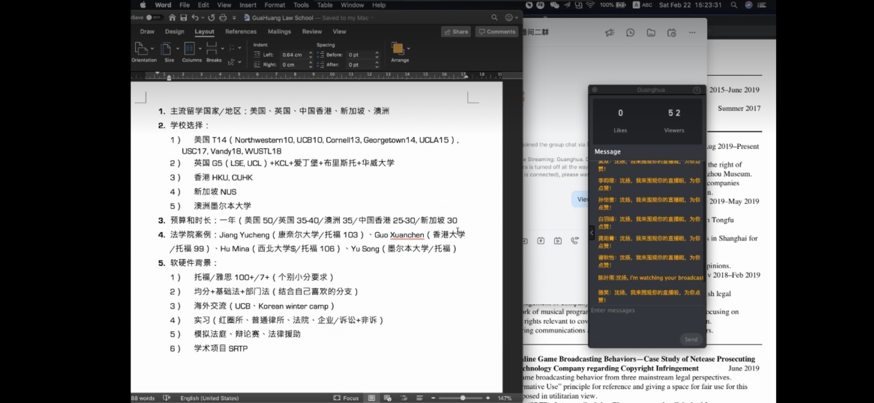 2月22日下午14:30,辅导员直播间第三期直播如约而至。本次直播邀请了两位托福高分同学周冰和章晓涵,加州大学伯克利分校LLM在读的王朝睿,以及嘉程留学的两位老师作为直播嘉宾。他们分别就托福考试及留学申请作出了经验分享,近200位同学观看了这次直播。