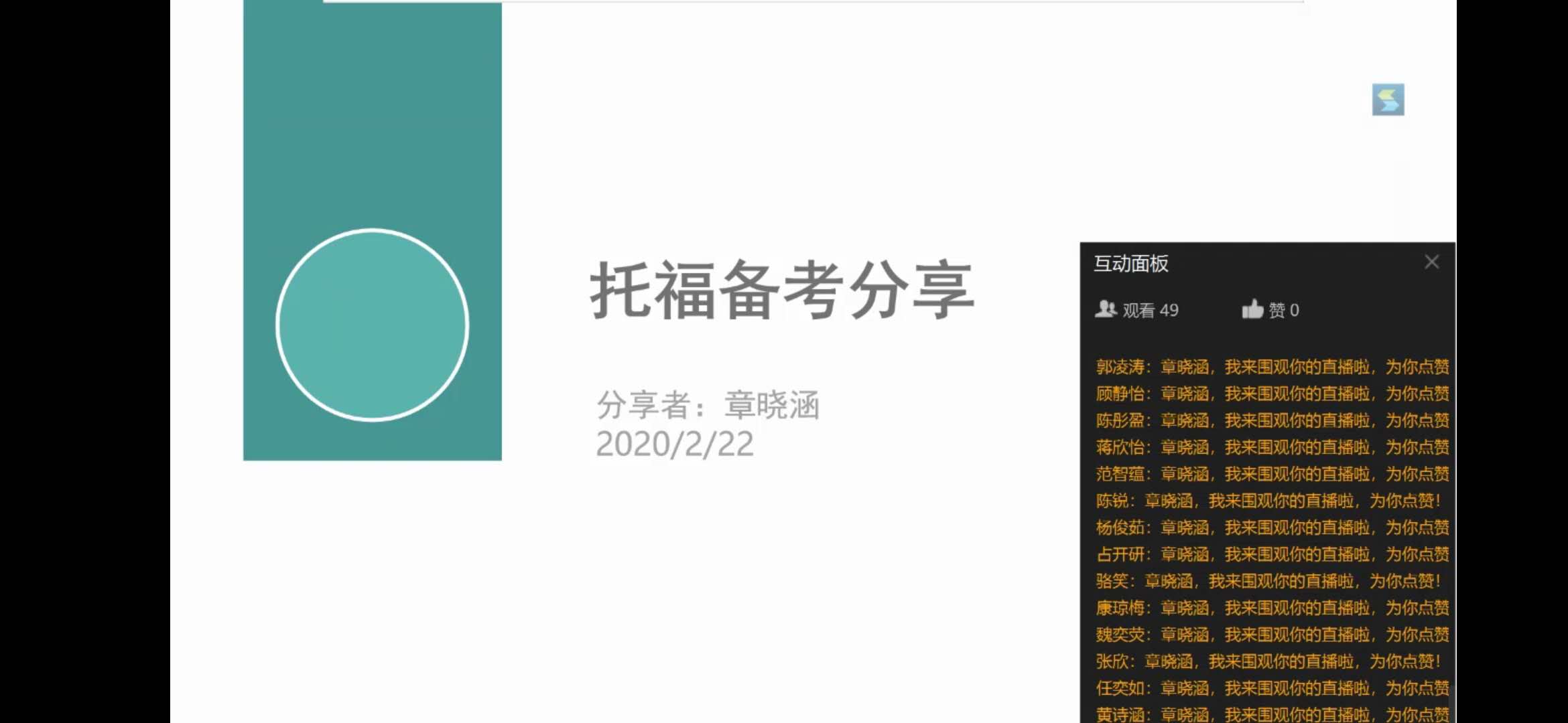 最后,在本期的提问互动环节,同学们就自己在出国留学和托福考试上面临的问题进行了提问,五位分享者也作出了详细的回答。相信同学们在本次直播中收获满满。