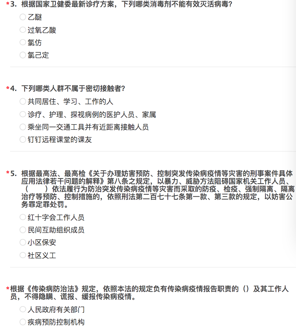 在本次会议的最后环节,为检测各位党员同志对疫情相关知识的了解程度,第四党支部举行了一次线上小型知识竞赛,支部成员积极作答。从测试的结果来看,大家对疫情相关的知识都有一定的了解,但一些细节之处仍需加强。