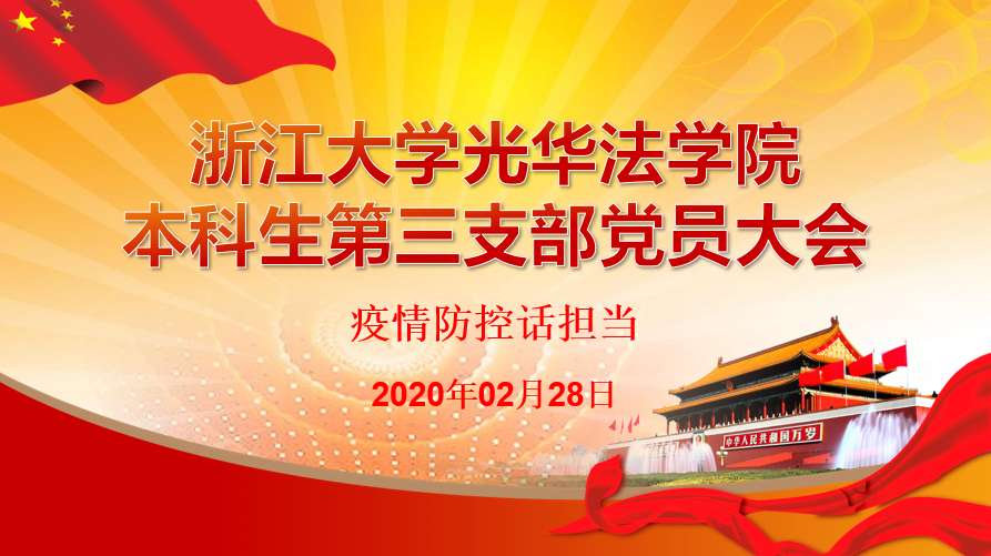 2020年2月28日,光华法学院本科生第三支部通过“浙大钉”召开本学期第一次支委会和党员大会。本次会议围绕“疫情防控话担当”为主题,通过理论学习、话题讨论、“党员回家”分享等环节引导全体支部成员关注疫情、强化责任、共同战役。