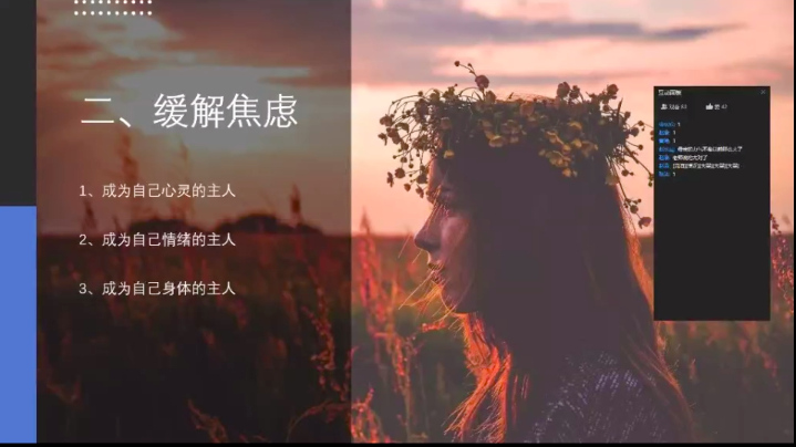 日常生活中,焦虑情绪也往往伴随着压力产生,而在在疫情特殊期间,大家活动受限长期在家,同样可能感到焦虑,为了更好的缓解焦虑情绪,我们要调整看待问题的态度,成为自己心灵的主人;识别、直面并释放情绪,成为自己情绪的主人;通过渐进式肌肉放松法、舒适到呼吸放松法、推墙法等方式去缓和紧张的身心,成为自己身体的主人。谢老师同样提到提到,疫情期间更要让身体动起来、放飞大脑,每个人在面对疫情时有自己的加工方式和节奏,我们要找到自己的节奏,也要尊重他人的方式和节奏。