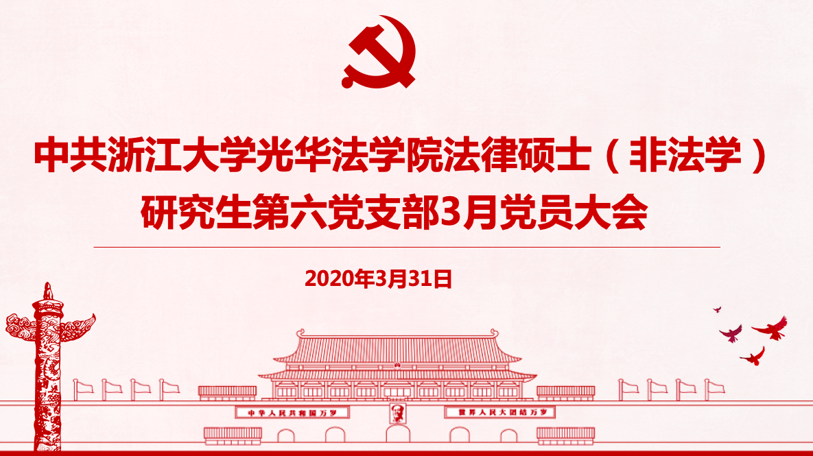 2020年3月31日,为积极响应学院党委号召,光华法学院法律硕士(非法学)研究生第六党支部以“疫情当前,使命在肩”为主题召开了本月线上党员大会。本次大会由支部书记杨舒鸿主持,全体党员线上参加。大会分为支部成员讲党课和抗疫志愿者心得分享两个环节。