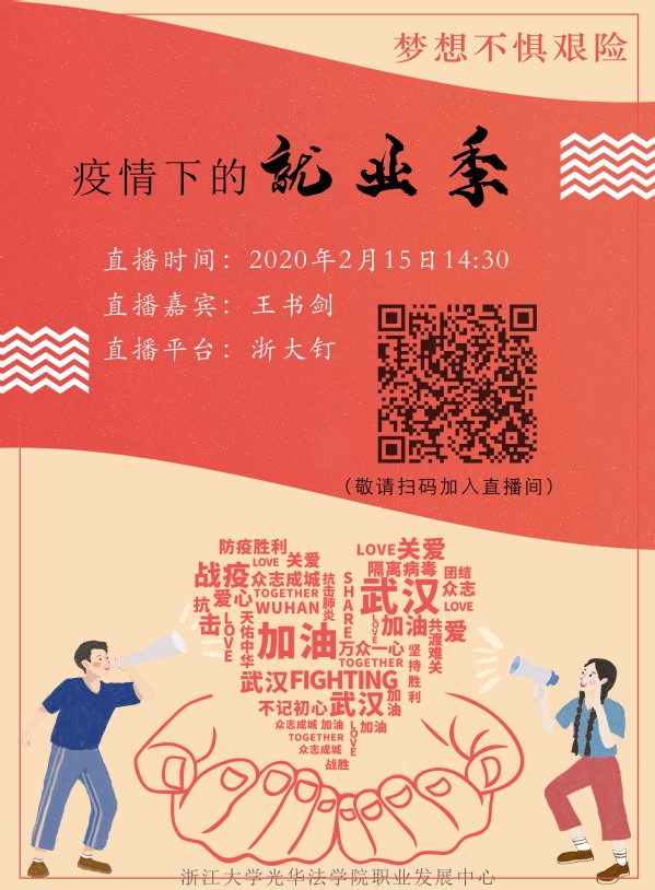 竺可桢老校长提出过,中国的大学,必须培养“合乎今日的需要”的“有用专门人才”。在疫情的阴霾之下,我们大学在培养“合乎今日的需要”的人才时也要“合乎今日的条件”,因时因地制宜育人,在任何时候都坚守好大学的责任与担当。大学之大,有容乃大,无论线上线下,对人才的培育一刻不曾松懈,对学生的关怀一刻不曾放弃。浙江大学光华法学院在疫情下全面贯彻落实习近平总书记关于坚决打赢疫情防控人民战争总体战阻击战的重要指示精神,积极开展高校毕业生就业指导与服务工作,无时无刻不在为更好地服务同学而努力。