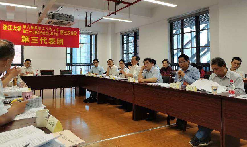 会上,总会计师石毅铭作学校财务收支执行情况报告,校党委常委、统战部部长、工会主席楼成礼作教代会、工会工作报告,提案工作委员会主任叶桂方作提案工作报告,表决并通过了《关于西湖区块人才专项房和余杭区块商品房申购的若干意见》。大会表彰了八届二次教代会优秀提案和提案办理先进单位。任少波、吴朝晖为获奖代表和单位颁奖。会议期间,各代表团以高度的使命感和责任感,讨论和审议大会各项报告,为学校改革发展建言献策,其中,学院党委书记张永华担任第三代表团团长。