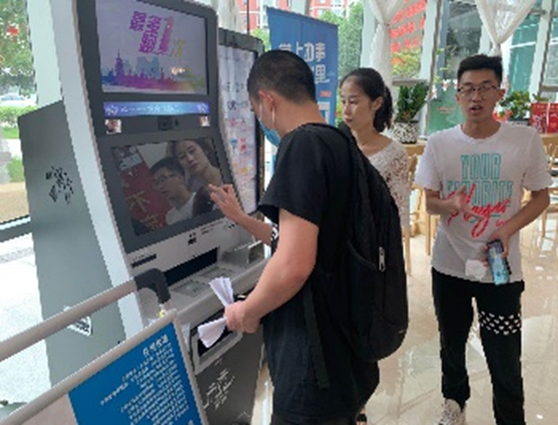 对于农民工可能会遇到的“欠薪”、“工伤”等问题,邻里社区积极与周边企业和社保局对接,开启基层调解解决纠纷的新渠道,为了让农民工更方便地办事,维护自己的合法权益,邻里社区在居委会开启集中服务窗口和自助一条龙服务设备,让农民工在自己的家附近“最多跑一次”。实践团成员在工作人员的指导下体验了工伤社会保险的一条龙办理,确确实实体会到了快速便捷的服务。