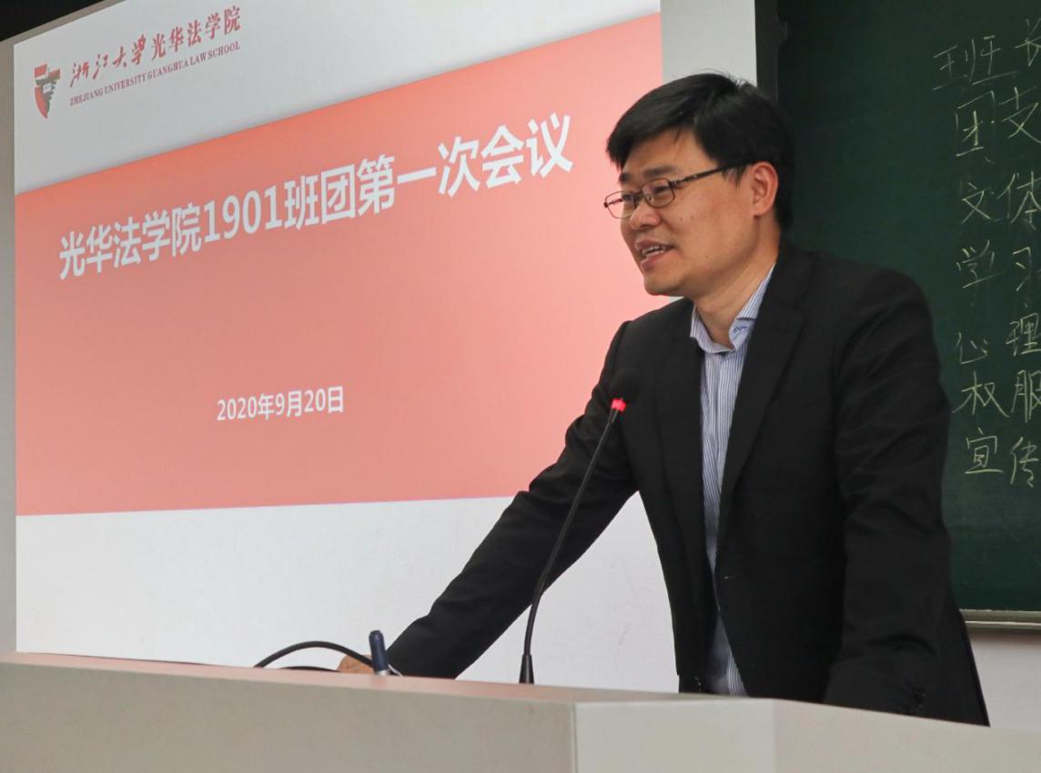 2020年9月20日15时,法学1901班第一次班会在西1B219教室召开。光华法学院常务副院长胡铭教授、1901班班主任陈思老师、团委副书记骆笑老师、辅导员王然老师与各位同学线下见面,畅所欲言,共同组建1901班的班团组织。