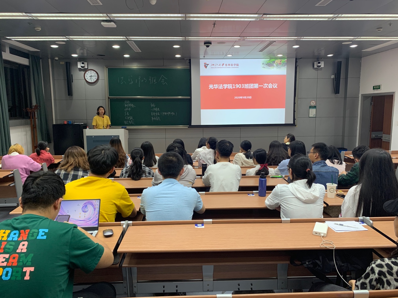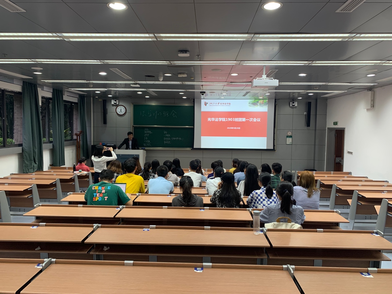 2020年9月20日,法学1903班第一次班会在西2-104教室召开。浙江大学光华法学院常务副院长胡铭教授、班主任何香柏老师、团委副书记骆笑老师和辅导员王然老师参与了此次班会,与同学们亲切交流大学生活的心得体会,引导同学们思考接下来的路该怎么走,并与同学们共同组建了1903班的班团组织。