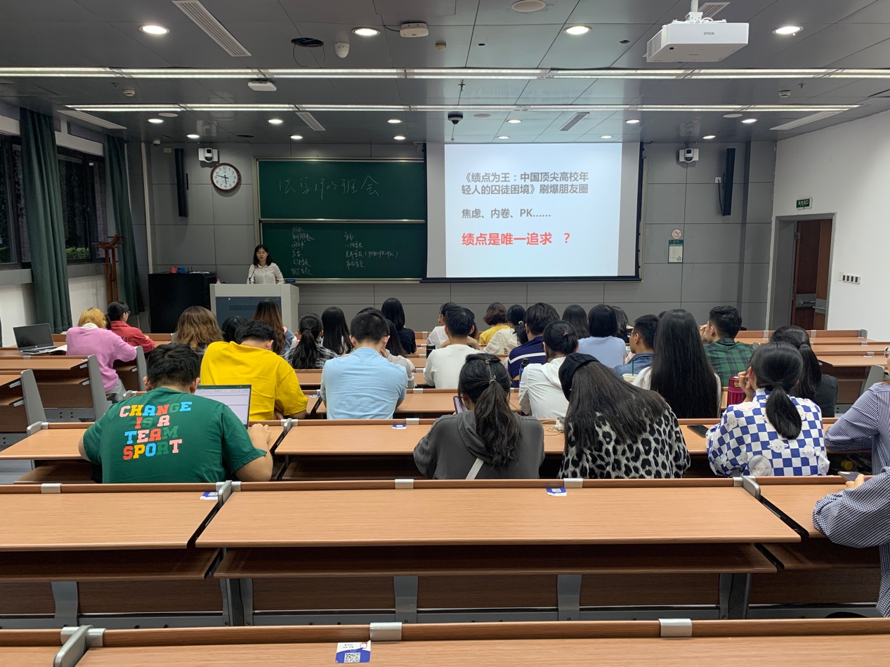 随后,骆笑老师结合三联生活周刊最近引发诸多人深思的一篇文章《绩点为王:中国顶尖高校年轻人的囚徒困境》指出,绩点不是大学学习生活的唯一追求,我们应当放下过度焦虑,专注于“生活痕迹”。骆老师又结合近四年的学院升学、就业数据,帮助同学们对未来发展道路树立更为清晰的认识。最后老师也鼓励大家完成在法学院一定要做的n件事,丰富生活,充实自己。