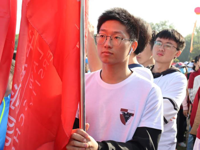 场上,光华法学院师生们挺拔的身姿格外引人注目。他们中有从之江校区专程赶来的大三大四同学,也有刚加入法学院的大二萌新。穿着统一印有光华法学院标志的白色院衫站在飘扬的院旗下,他们的沉静中自有一股蓄势待发的力量。光华法学院党委副书记、纪委书记吴卫华老师也专程赶来参加此次的运动会开幕式并带领同学们参加开幕式后的阳光长跑。
