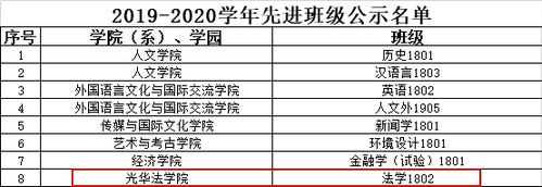 此外,经浙江大学本科生院与浙江大学党委学生工作部评选,近日公布了获浙江大学2019-2020学年先进班级名单。光华法学院法学1802班荣获浙江大学2019-2020学年先进班级荣誉称号。