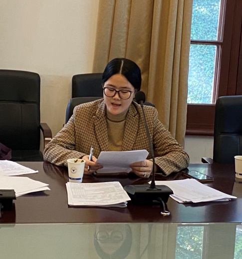 第三环节,学院纪委委员、民商法教工党支部书记陆青作为教工支部代表,对近期党建活动作简单分享。他介绍了民商法教工党支部自《民法典》颁布以来作民法典解读百余场,拟计划将退休教师荣休仪式作为支部传承活动,并从师德师风、立德树人的角度浅谈学院师生的实际需求。