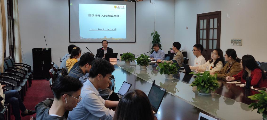 2021年4月23日下午,南京大学法学院孙国祥教授应邀到访浙江大学光华法学院,在之江校区图书馆5号楼206会议室为我院师生带来了一场题为“法律人的刑法思维”的精彩讲座。本次讲座系第303期法学前沿,由浙江大学光华法学院叶良芳教授主持。