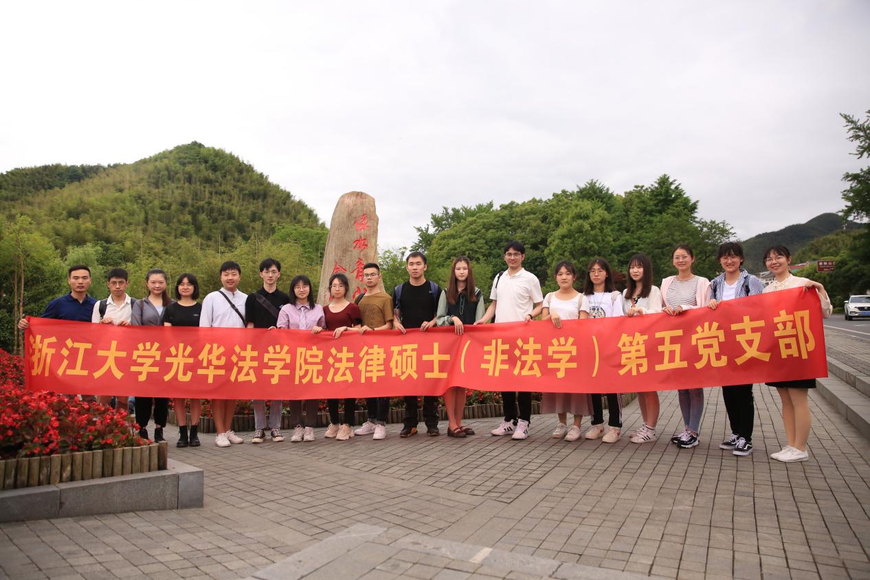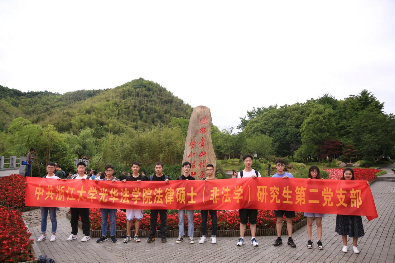 2021年5月16日,浙江大学光华法学院法律硕士(非法学)研究生第二、五、六党支部以及法律硕士(非法学)1903团支部,教工团支部以“学悟百年党史,探访两山理念”为主题举行联合主题党团日活动。各支部一行40余人来到两山理念的发源地——湖州安吉,在中国共产党建党100周年即将到来之际,回顾百年党史,学习习近平总书记“两山理念”,体悟乡村振兴,宣传法治理论,发挥好学生党员的先锋带头作用。