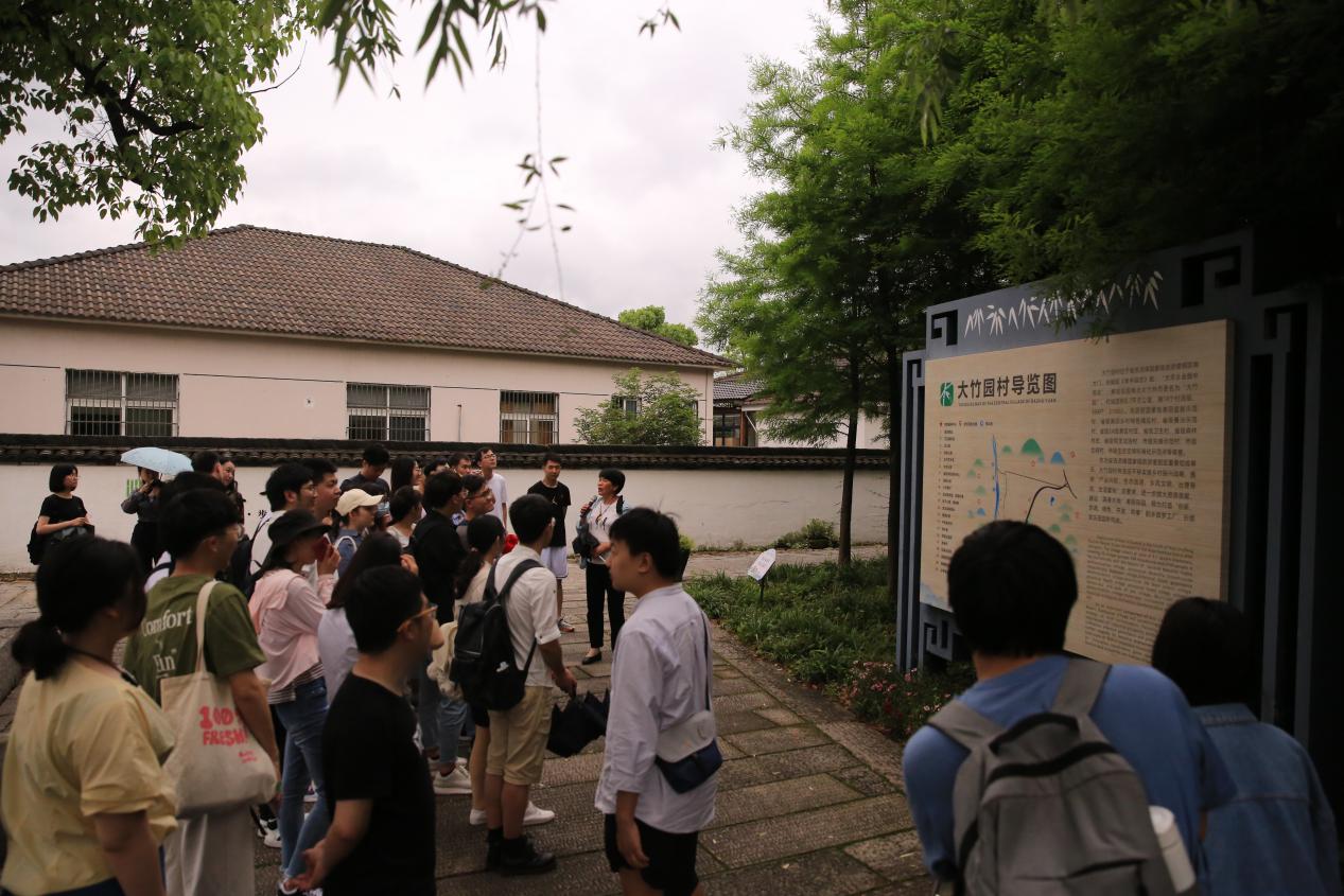 第二站,各支部党员同志来到了“国家级美丽宜居示范村”——大竹园村。粉墙黛瓦的民居依地形分布,错落有致,遵循原有村落的自然肌理,建造了“青山环聚落,绿水绕田园”的景观格局。