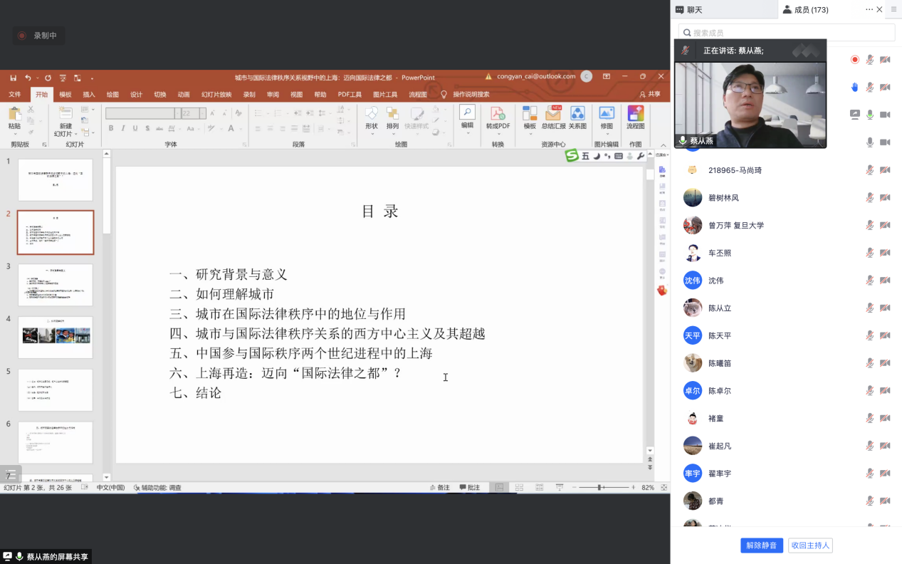 会议由光华法学院副院长、国际法学教授赵骏老师主持。赵骏教授分享了他对于统筹推进国内法治和涉外法治视角下的国际法研究方法的内涵外延及重要性的理解。他认为研究方法包括宏观、中观、微观三个层面,精准选择妥当的研究方法并加以妥当运用,对于开展高质量的国际法研究至关重要。开场白后,会议进入专家讲演环节。