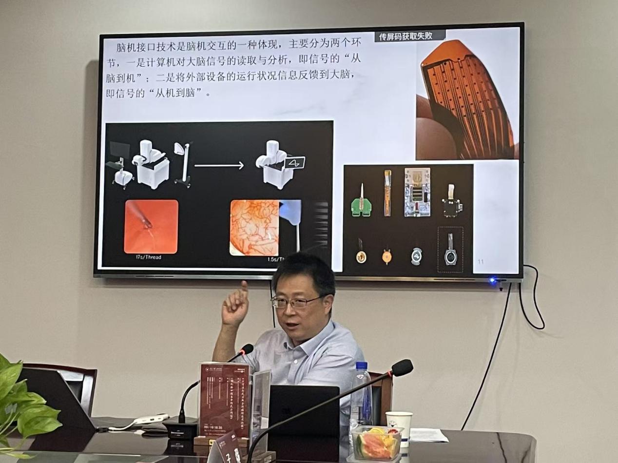 孟强教授首先简要介绍了脑机接口技术,这是一种能够把自然人的大脑信号转化为计算机指令的技术,其可以采集、分析和处理人类大脑中的电信号,同时也可以让大脑接收来自外部设备的反馈信号,让自然人与外部世界进行交流和互动,形成一个交互式的闭环系统。脑机接口技术在当下的运用的实例多在医疗领域,如对于肢体运动障碍患者、神经发育障碍患者、精神病患者、意识与认知障碍患者、因瘫痪而无法进行语言表达的患者等的修复、治疗、辅助,此外也涉及教育、交通、军事等领域。