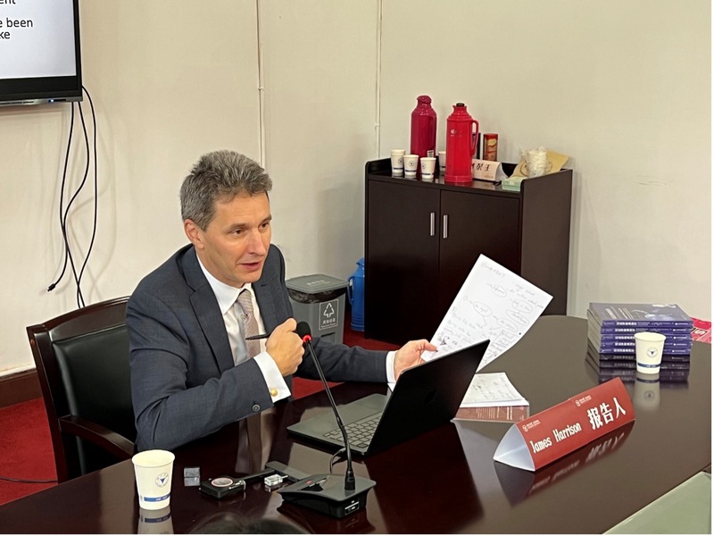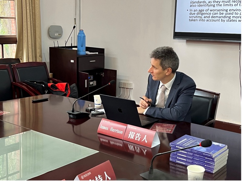 主持人施余兵教授对主讲人James Harrison教授做了介绍。James Harrison教授现任英国爱丁堡大学法学院讲席教授,在国际公法与公法领域拥有逾十五年的教学与研究经验,他的研究涵盖国际与国内环境法、治理机制及争端解决,尤其专注于海洋环境的保护与保全问题。