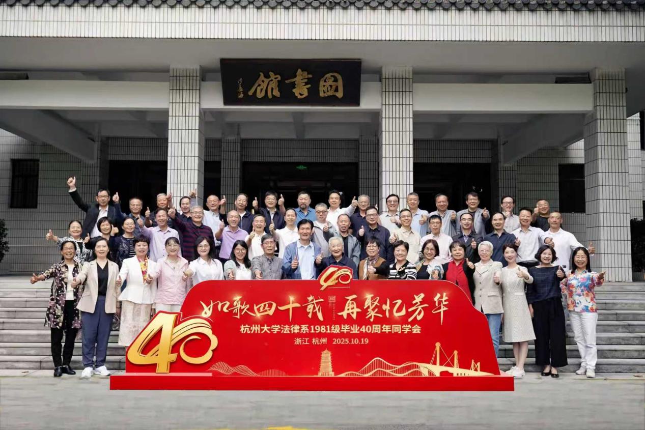 2025年10月19日,恰逢浙江大学光华法学院(法学学科)创办80周年之际,西子湖畔,宝石山下,原杭州大学校址(现浙江大学西溪校区),迎来了一群特殊的访客,他们便是从各地赶来参加毕业40周年返校聚会的原杭州大学法律系1981级同学。在西溪校区艺术楼宽敞的阶梯教室里,与会同学46人(年级原有60人),与受邀老师代表费新民、费善成和方立新等欢聚一堂,共同度过了有特殊意义的美好时光。