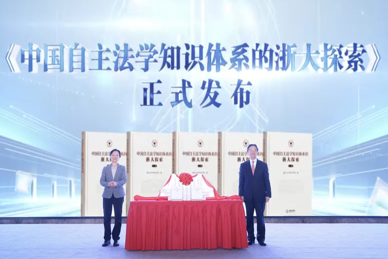 Guided by Xi Jinping Thought on the Rule of Law, Zhejiang University has identified “building an autonomous knowledge system in Chinese jurisprudence” as the central task for the development of its law discipline. The release of Zhejiang University’s Exploration of an Autonomous Knowledge System in Chinese Jurisprudence not only showcases Guanghua Law School’s accumulated academic strengths but also offers a “Zhejiang University approach” for advancing the development of an autonomous knowledge system in Chinese jurisprudence nationwide. The launch ceremony was unveiled by Liang Liming, President of the China Society of the Law of the Sea and former Secretary of the Leading Party Members Group and Vice Chair of the Standing Committee of the Zhejiang Provincial People’s Congress, and Huang Huikang, senior diplomat and Distinguished Professor at Wuhan University.
